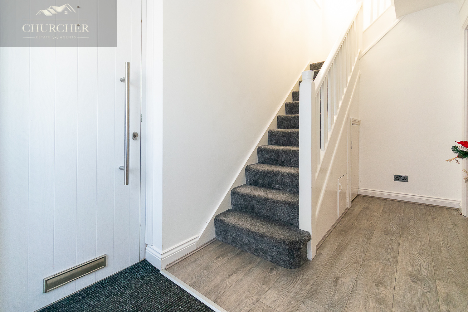 Entering the property, you are welcomed into a bright and inviting hallway, finished with modern flooring and a clean, neutral décor that sets a warm and contemporary tone. The staircase rises to the first floor, with handy under-stairs storage neatly integrated, adding practicality to this well-presented space.