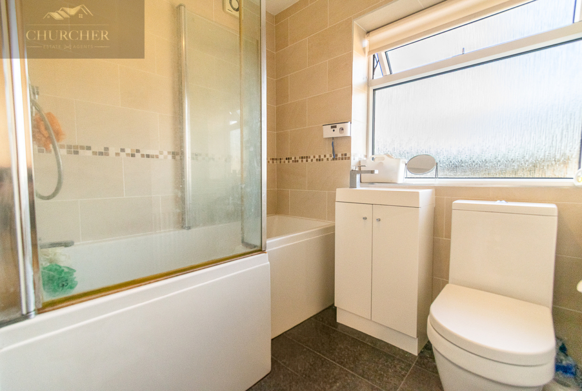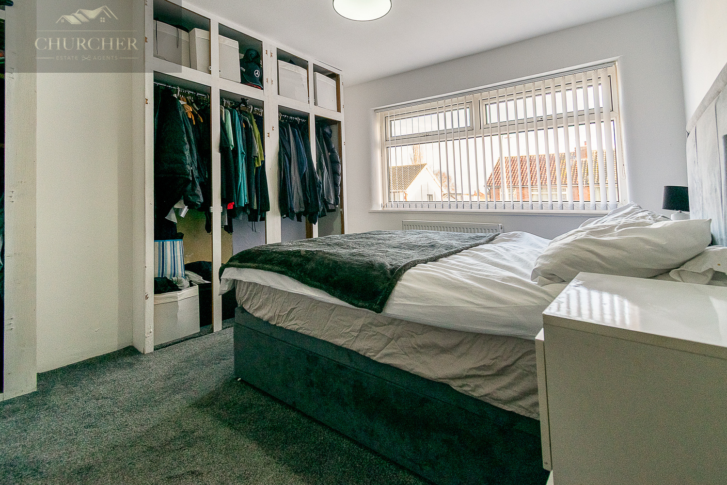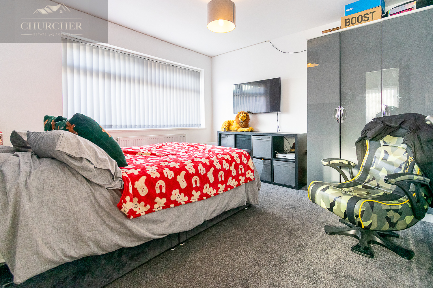 Upstairs, the main bedroom sits to the front and provides excellent proportions along with a substantial built-in wardrobe area, making it both spacious and practical. The second bedroom is also a generous double, featuring a wide window that allows natural light to pour in, offering plenty of room for a double bed and storage. The third bedroom is ideal as a children’s room, guest room, or home office.