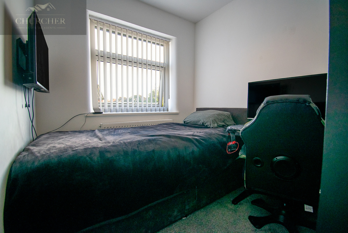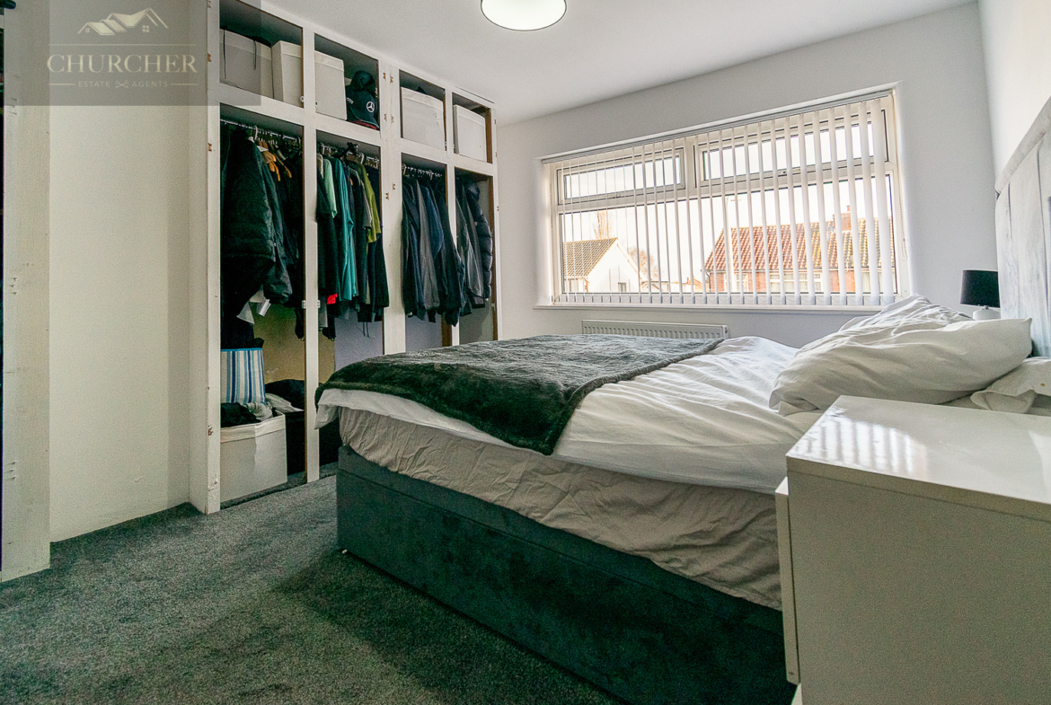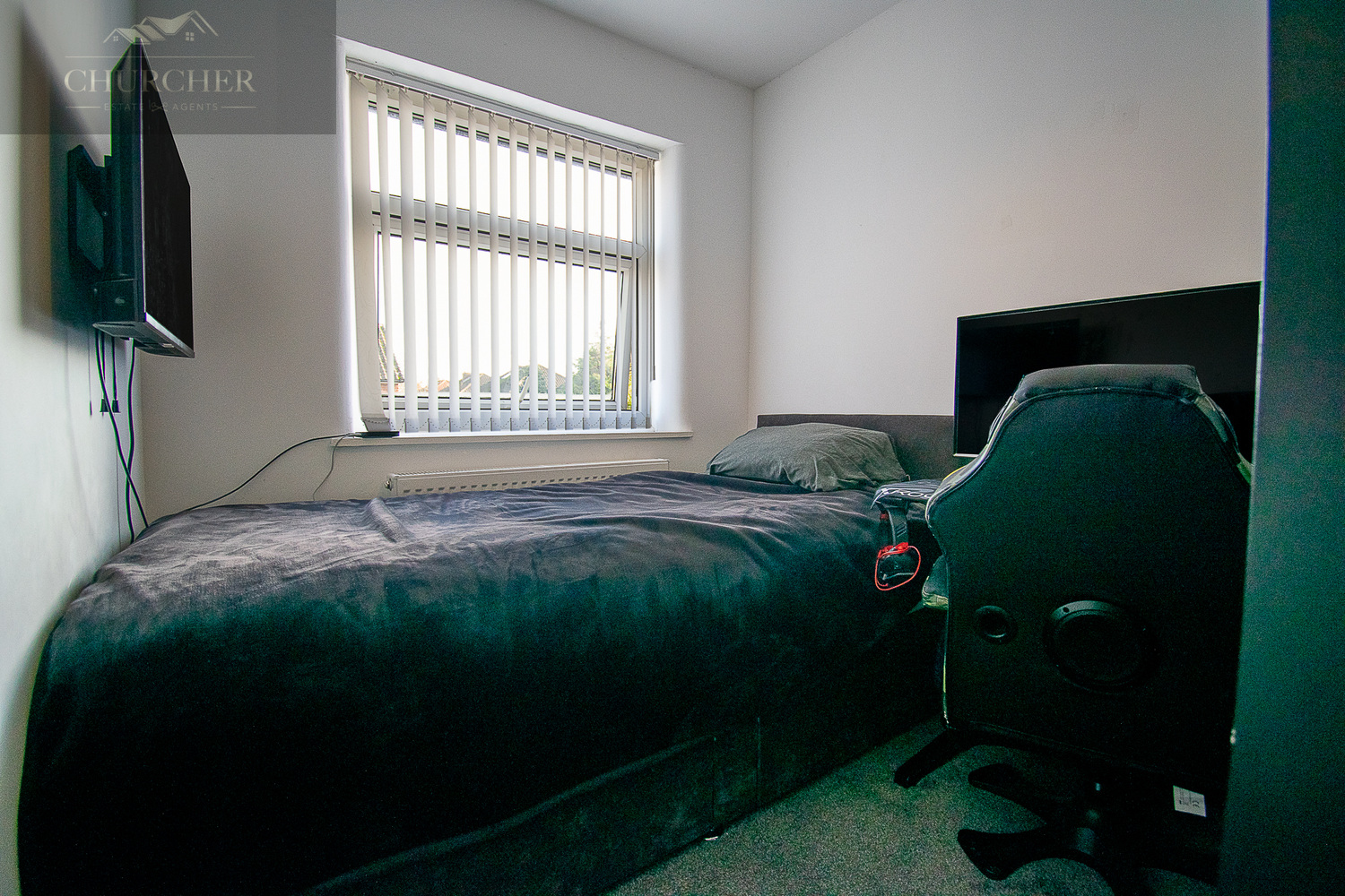 Upstairs, the main bedroom sits to the front and provides excellent proportions along with a substantial built-in wardrobe area, making it both spacious and practical. The second bedroom is also a generous double, featuring a wide window that allows natural light to pour in, offering plenty of room for a double bed and storage. The third bedroom is ideal as a children’s room, guest room, or home office.