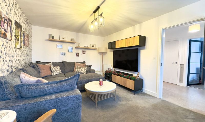 To the front of the property is a beautifully presented lounge, offering a calm and comfortable retreat. Soft carpeting, tasteful décor and a large front-facing window create a cosy yet stylish atmosphere, ideal for relaxing evenings or entertaining guests in a more formal setting.