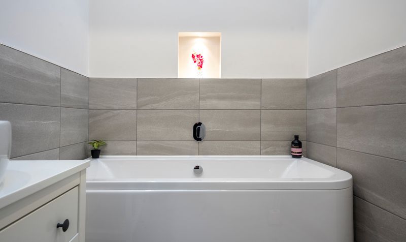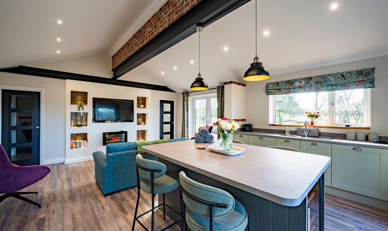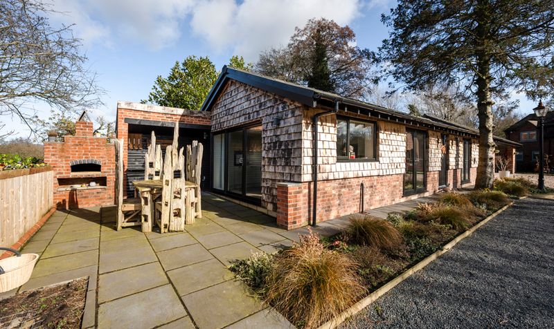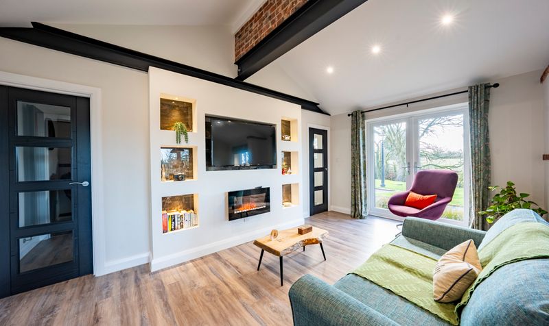 Externally, a beautifully designed 1-2 bedroom annex offers independent living, finished to the same exceptional standard as the main house. This versatile space features an open-plan kitchen and lounge area, complete with a stylish island for additional seating and media wall. Flooded with natural light from double patio doors and bi-folds, the annex seamlessly extends onto a private patio, complete with a bar, pizza oven, and hot tub-perfect for outdoor entertaining. A modern bathroom, complete with a sleek bathtub, sits off the hallway, while the spacious double bedroom leads onto an en-suite and is complemented by an additional office or second bedroom, offering flexible living arrangements.