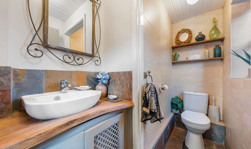 As you approach the cottage, you’re greeted by a quaint exterior that blends harmoniously with the surrounding landscape. Upon entering the cottage, you step into a large living room that exudes warmth and comfort. The centrepiece of the room is the grand fireplace, crafted from brick, adding a rustic charm and serves as a perfect gathering spot during colder months. The little nook which has been created at the front window, is perfect as a quaint reading spot.