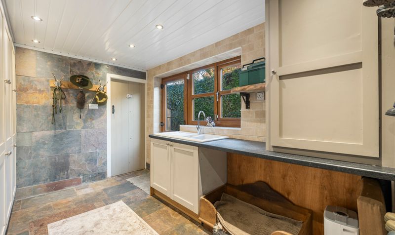 Adjacent to the kitchen, the utility and boot room provide practical storage solutions, ensuring that the kitchen remains organized and functional