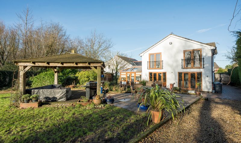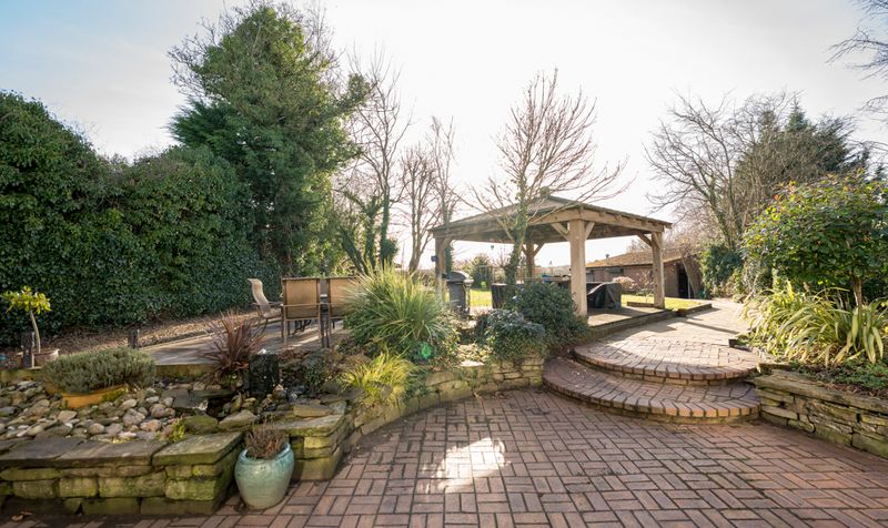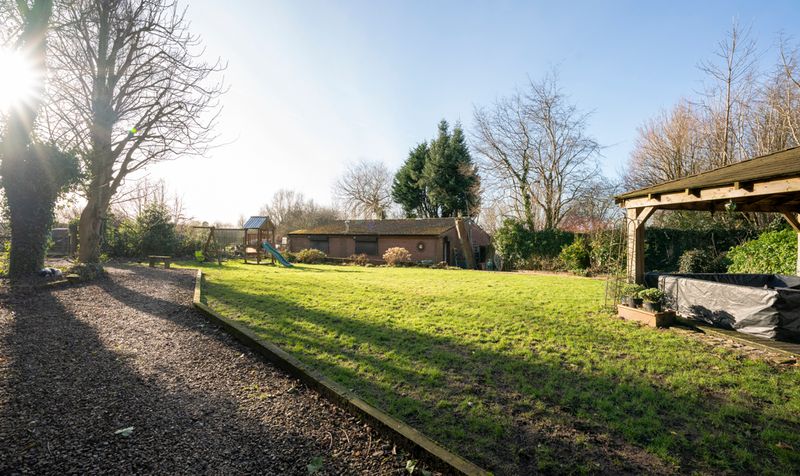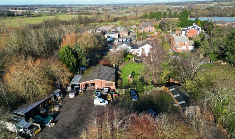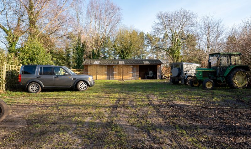The exterior of the property is set on a generous 4-acre plot, providing ample space for various outdoor activities and features. The landscape is primarily made up of 3.5 acres of agricultural land, which has a separate access via Course Lane. A large, detached workshop is situated on the property, offering a versatile space for various projects or storage needs.