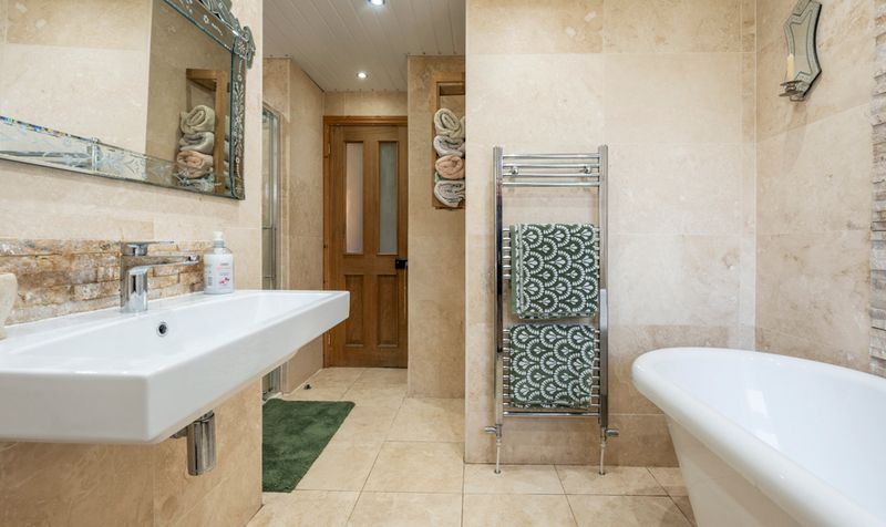 The first floor of the cottage is designed to provide a comfortable and inviting retreat, featuring four well-appointed bedrooms that embody the charming country aesthetic. The Main bedroom features beautiful ensuite with underfloor heating. The three additional double bedrooms are thoughtfully designed, each with its own unique character while maintaining the overall cottage theme. The family bathroom is a spacious area that combines modern convenience with classic charm with the comfort of underfloor heating.