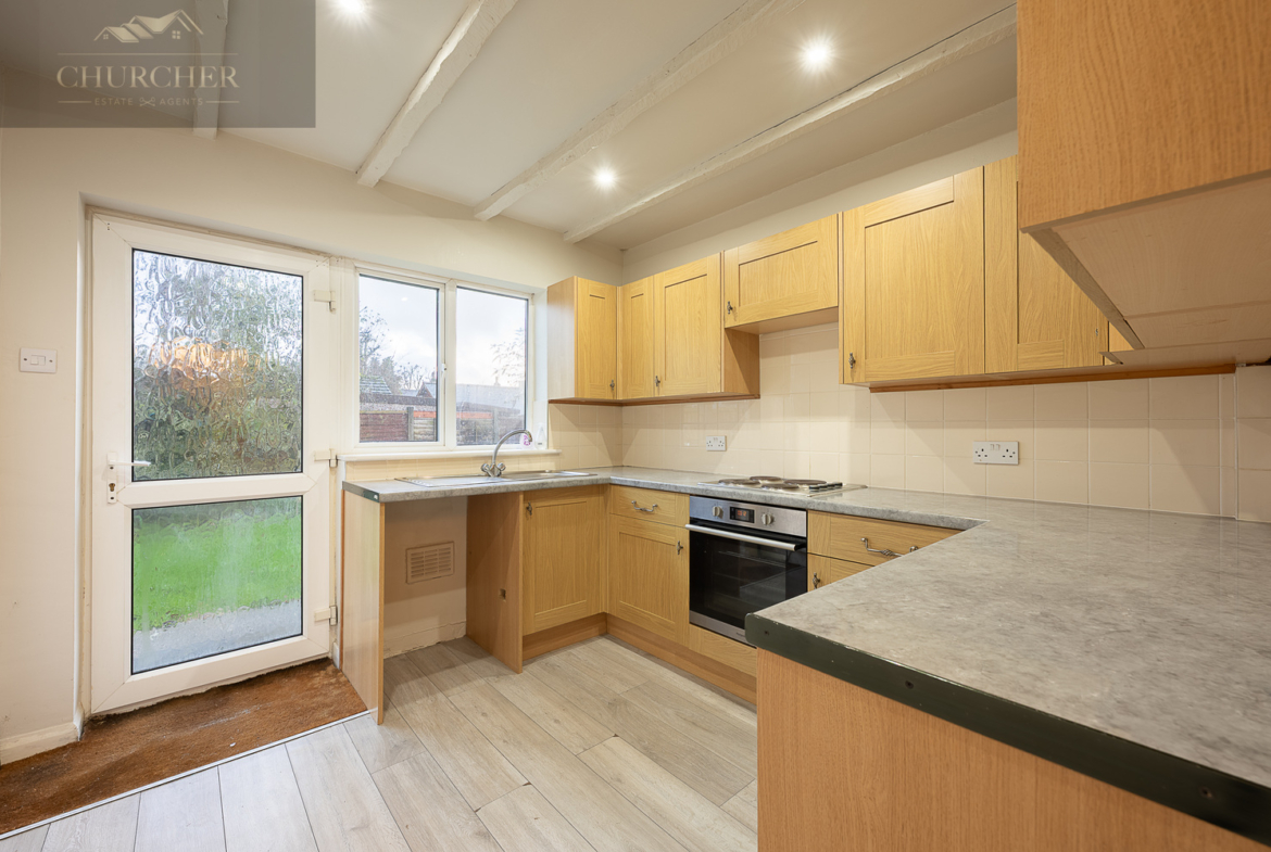 From the hallway, the kitchen sits at the rear of the property and enjoys lovely views over the garden. The kitchen is well laid out with an excellent range of cabinets, ample worktop space, and room for appliances. The rear window and glazed door flood the room with light, creating a bright and pleasant cooking environment while also providing direct access outside, ideal for enjoying the garden throughout the year.
