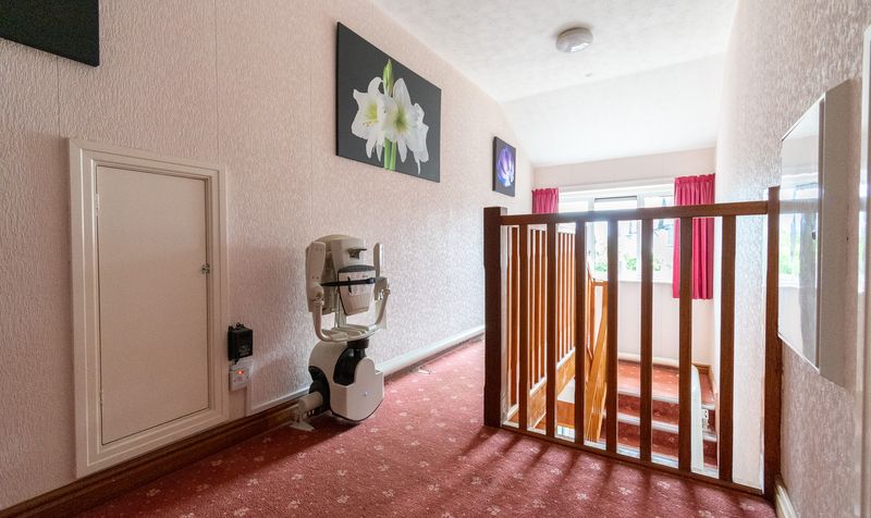 Set within a peaceful and well-maintained development, the apartment is positioned on the first floor and is easily accessed via a secure communal entrance. A stair lift has already been installed, offering added accessibility and convenience. Once inside, you are welcomed into a wide and inviting hallway that provides access to the principal rooms, with fitted storage enhancing practicality.
