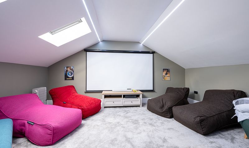 The property also benefits from a superb second floor, offering two additional versatile rooms currently used as bedrooms and cinema space, ideal for growing families, guests or hobbies.