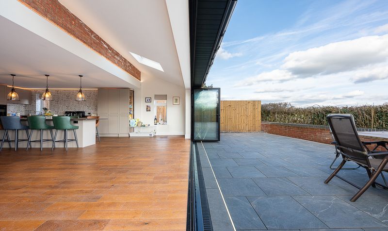- Bi-folding doors opening onto porcelain patio