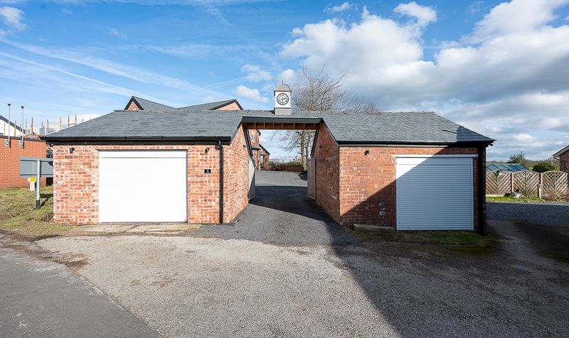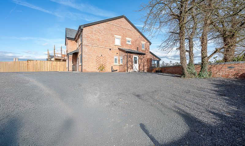 The approach immediately sets the tone, with a substantial gravel driveway providing ample off-road parking and leading to detached garaging. The attractive brick façade, slate roof detailing and clean architectural lines create a striking yet timeless exterior.