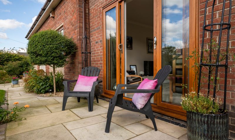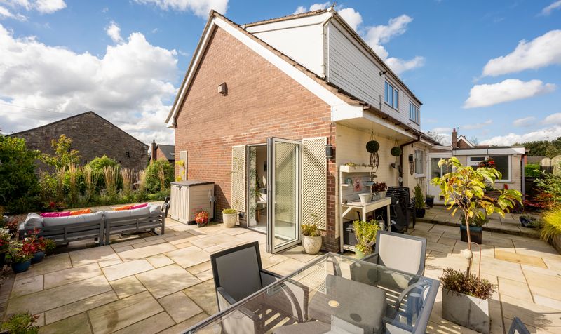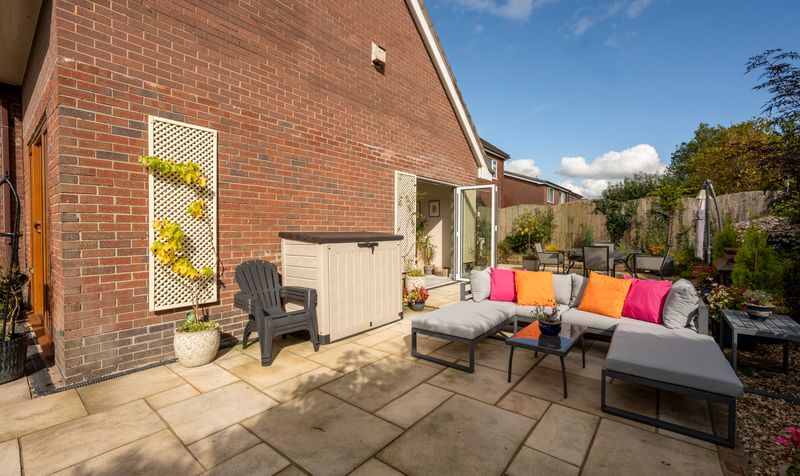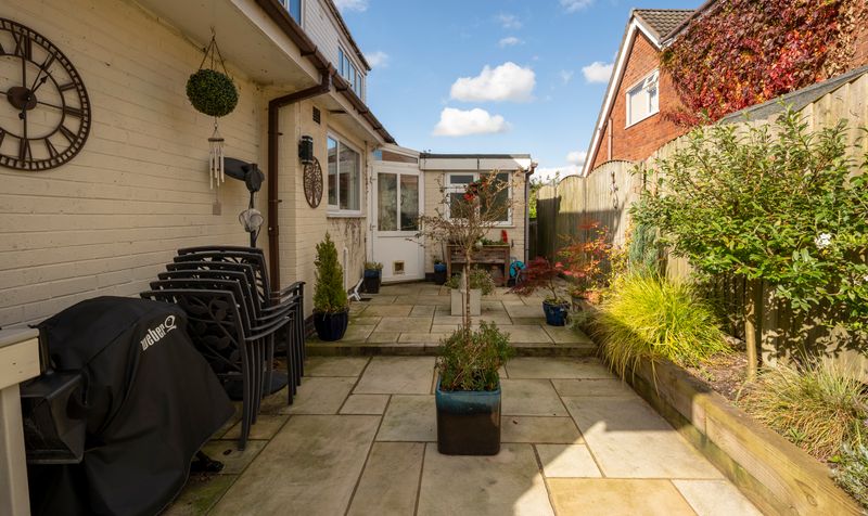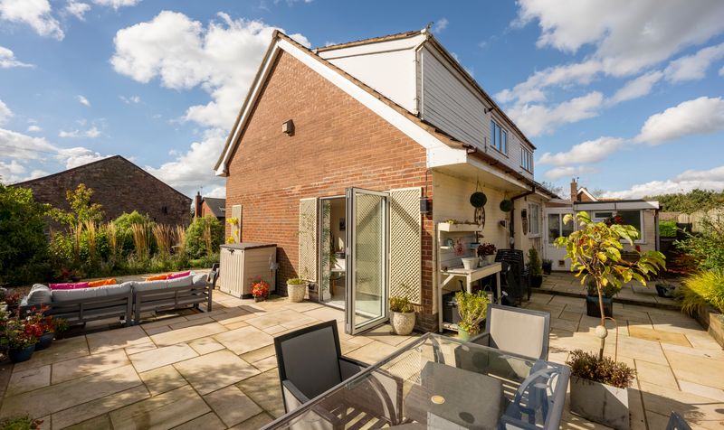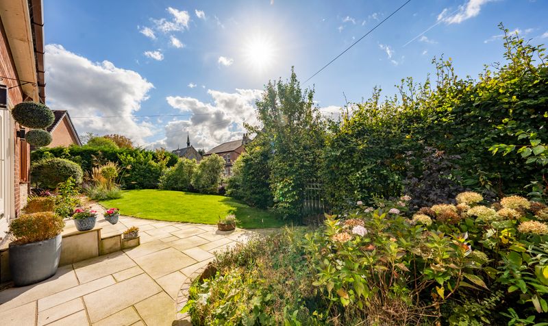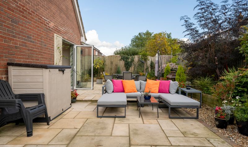 The property is set in a private location, featuring a beautifully maintained south-facing garden with a spacious patio ideal for outdoor dining and entertaining. Additionally, there is plenty of driveway parking and access to a single garage.