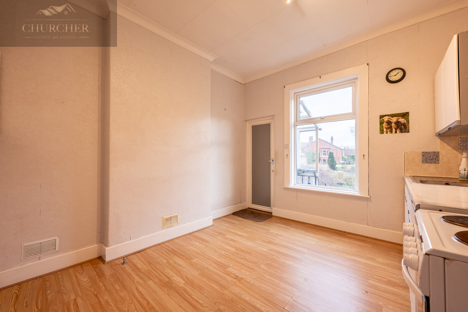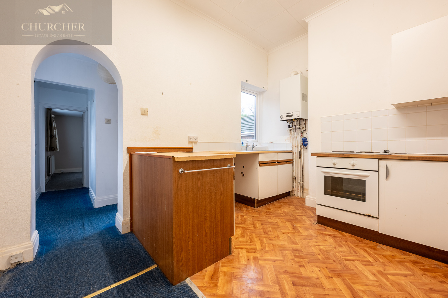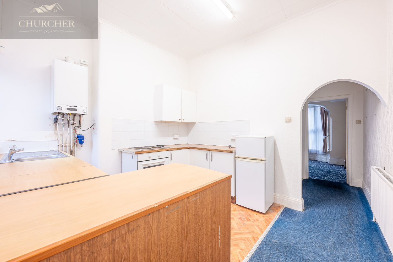 The kitchen areas are fitted with a range of units and work surfaces, providing functional spaces for day-to-day use. Given the current flat arrangement, there is more than one kitchen within the property, each practical in layout. There is clear potential for reconfiguration or updating, subject to the necessary permissions.
