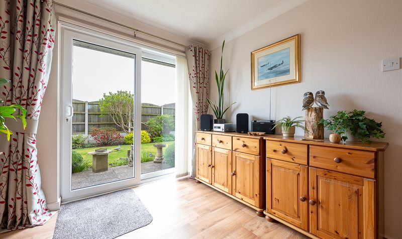 The dining room provides a pleasant setting for meals and gatherings, with ample space for a family dining table and direct access to the rear garden via sliding doors. This connection to the outdoors allows for plenty of light and offers an inviting outlook over the garden.