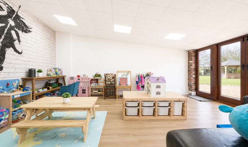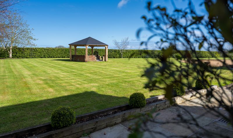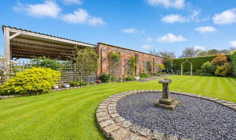 Externally, the property is set within approximately two acres of beautifully maintained grounds, including a charming walled garden, courtyard areas and open lawned spaces, all designed to maximise the peaceful rural surroundings. A sweeping driveway provides ample parking and leads to a detached double garage, which also benefits from an additional versatile room currently utilised as a playroom.