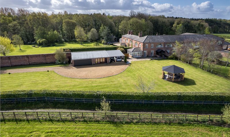 Accessed via a private road and secure electronic gates, the property enjoys an enviable sense of seclusion, surrounded by open countryside and mature woodland. A sweeping driveway leads through the grounds to the property, where the attractive façade sets the tone for what lies within.