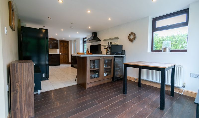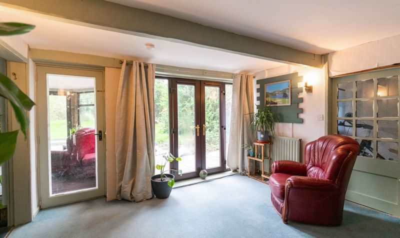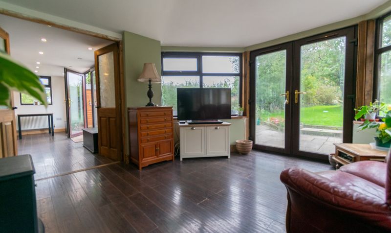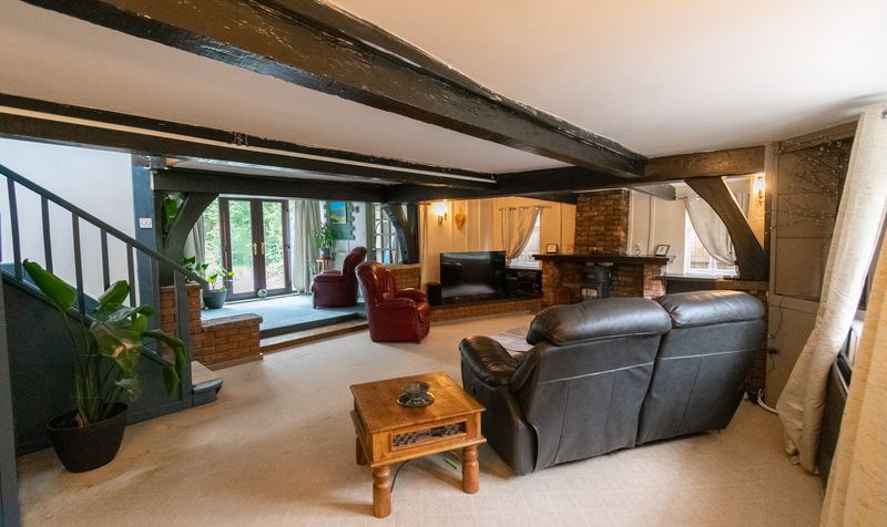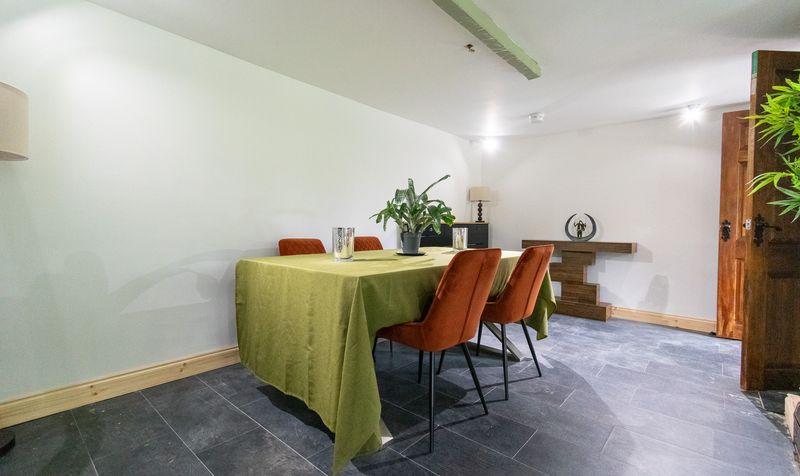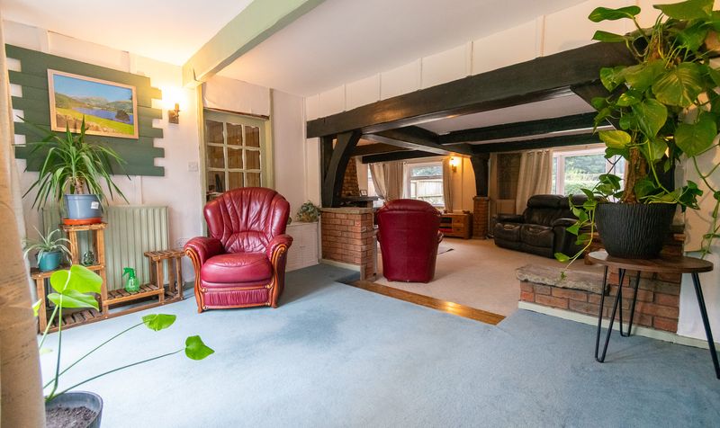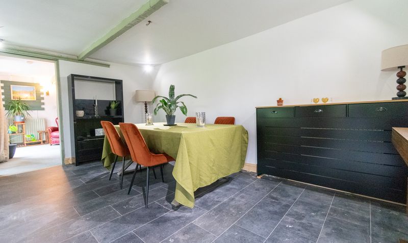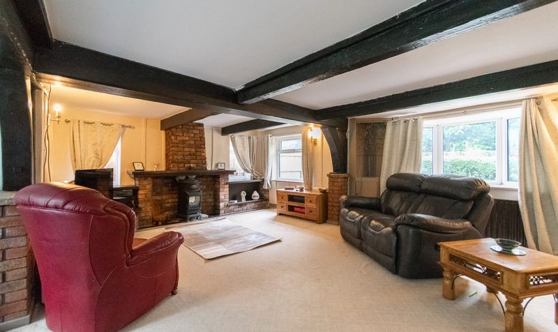 Stepping in through the porch, you are welcomed into the very heart of the home, where the lounge instantly sets the scene. This inviting space exudes warmth and character, creating a lasting first impression that perfectly reflects the charm and individuality of the property. Generous in scale, the room is defined by its striking exposed beams which add depth and authenticity, creating a wonderful balance between rustic charm and homely comfort. The feature brick-built fireplace with a traditional stove forms the heart of the room, providing a natural focal point and a cosy spot for family evenings or entertaining guests on cooler nights. Large windows draw in natural light, softening the space and highlighting the characterful details, while the layout allows for multiple seating arrangements, making it as practical as it is welcoming. Whether you imagine quiet evenings curled up by the fire, gatherings with friends and family, or simply enjoying the calm ambience, the lounge offers a versatile yet deeply comforting environment that immediately feels like home.