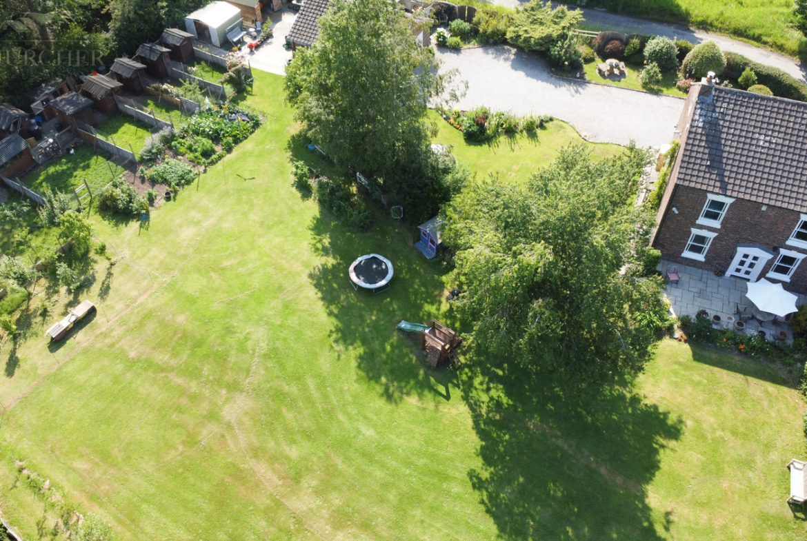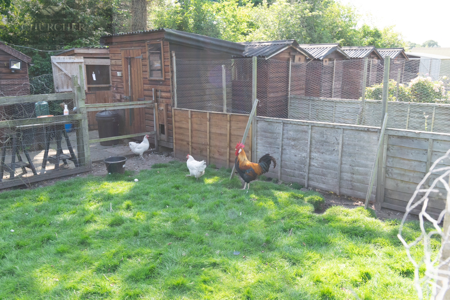 Outside, the grounds are as impressive as the interior. The property occupies a plot of approximately 0.75 acres, with expansive lawns, a fully fenced paddock with separate gated access, and multiple outbuildings including two sheds, a large greenhouse and a paved seating area beyond the garage – ideal for summer entertaining. A variety of hen houses currently accommodate around 30 chickens, offering excellent scope for hobby farming or outdoor interests, and the vast green space creates a haven for local wildlife. In addition, the grounds include a large vegetable garden, an orchard, and a well-stocked soft fruit area – ideal for those with a passion for homegrown produce.