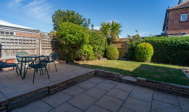 Outside, the rear garden offers a wonderfully private retreat. A raised patio provides an ideal setting for al fresco dining, morning coffee, or evening drinks, while the lawned area and mature planting add colour and calm. It is the perfect environment to relax and recharge.