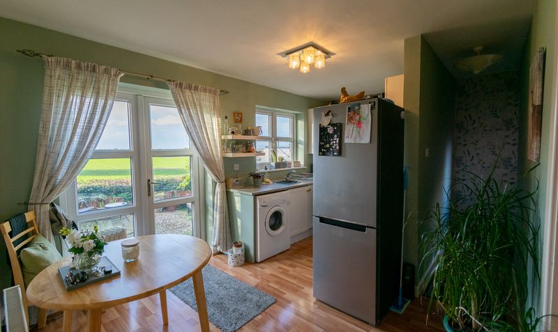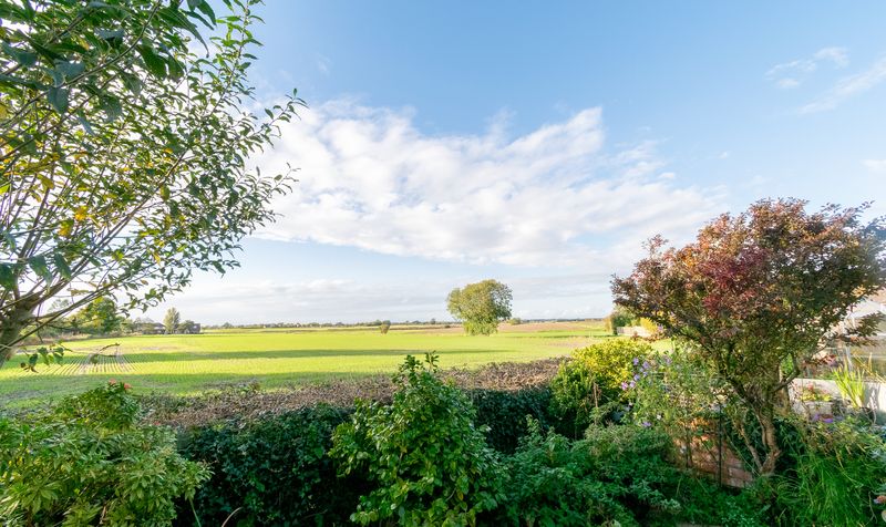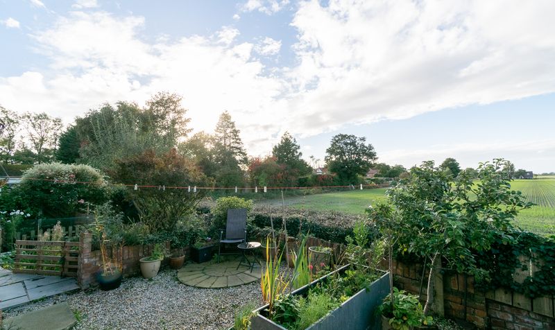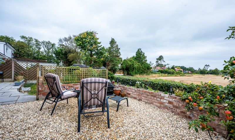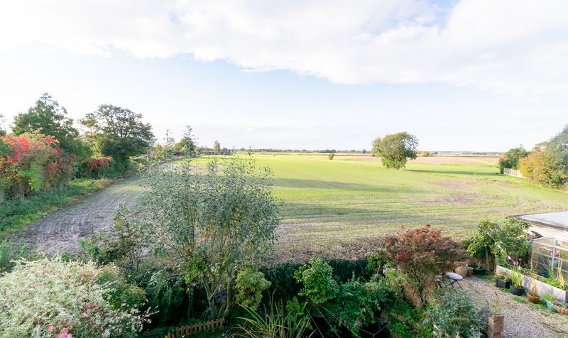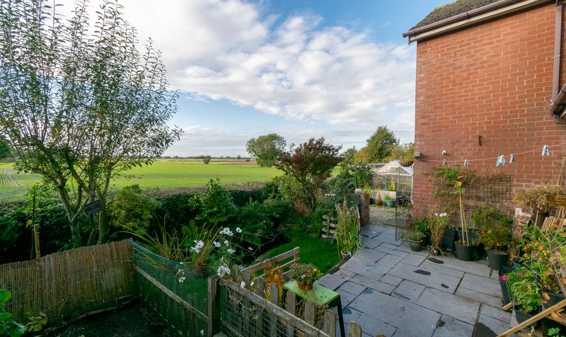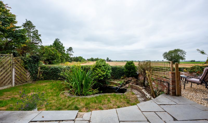 The west-facing rear garden is a true highlight of this property, offering uninterrupted views across open fields. A large stone-paved patio wraps around the house, making it the perfect space for outdoor dining or relaxing. A gravel seating area is ideally placed to soak in the view-perfectly positioned to enjoy the sunset every evening.