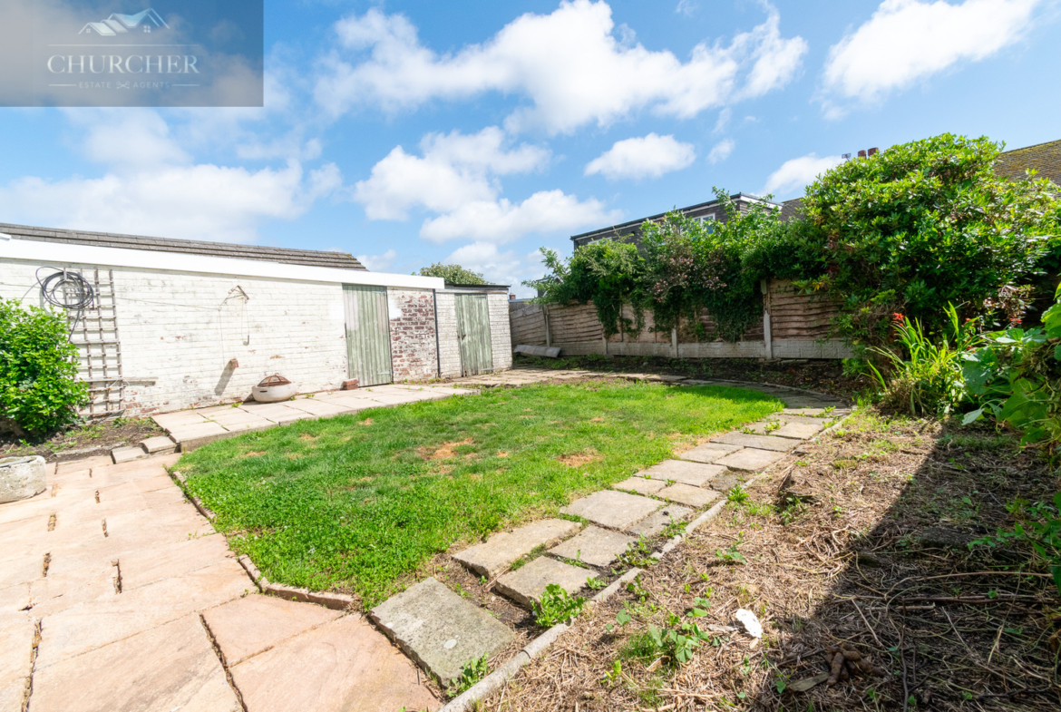 Externally, the property boasts excellent outdoor space. The front garden is low-maintenance and laid with decorative gravel, complemented by a large private driveway leading to a detached garage. To the rear, the garden is predominantly laid to lawn with paved patio areas – a perfect canvas for landscaping or family use, with ample room for outdoor dining or children’s play.