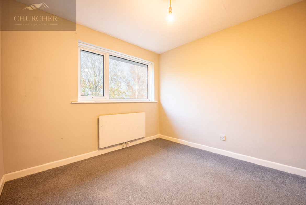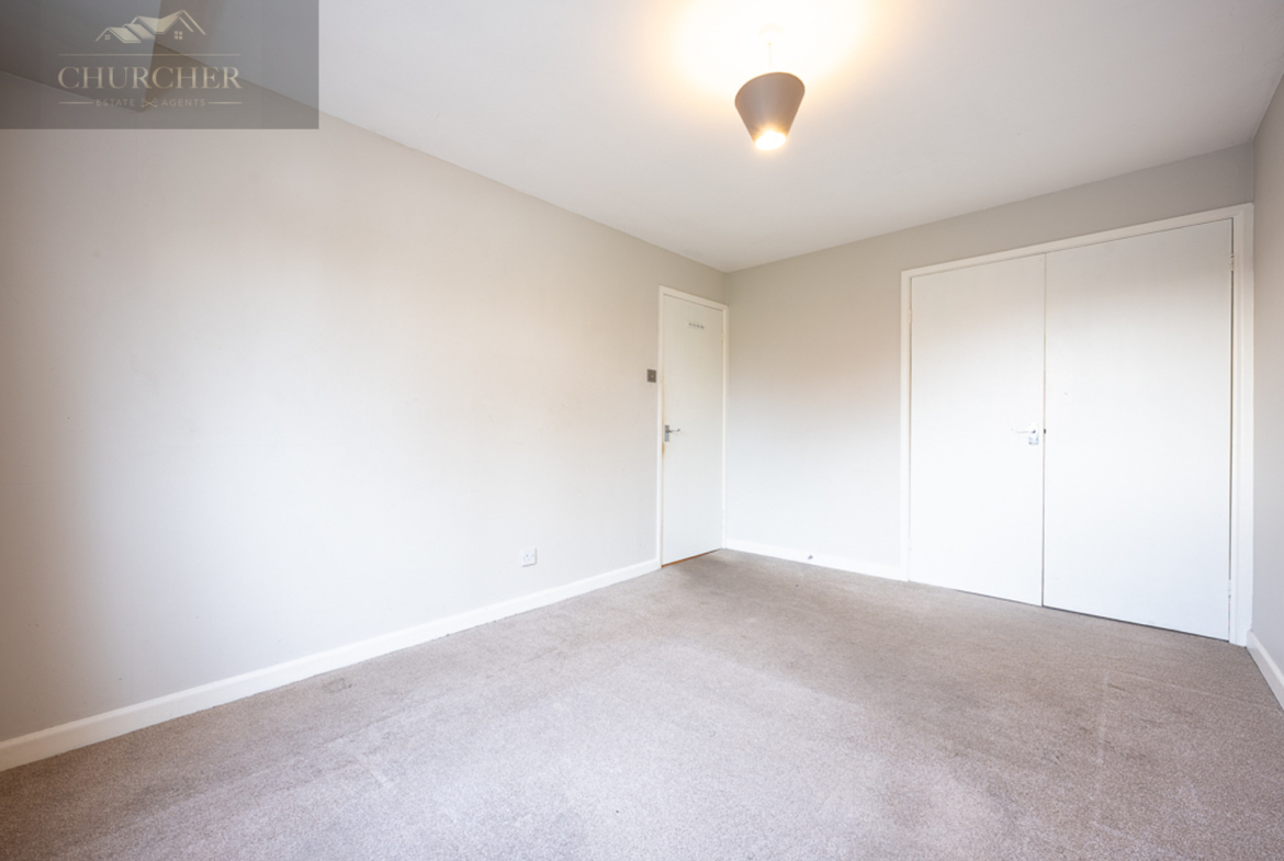 Upstairs, the property offers three bedrooms, each neutrally decorated and filled with natural light. The main bedroom sits to the front and includes a built-in cupboard providing useful storage. The second double bedroom overlooks the rear garden and also has a built-in cupboard for storage, while the third bedroom offers versatility as a single bedroom, nursery, or home office.