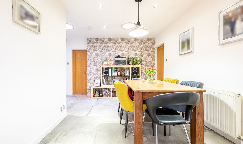 The dining room sits centrally within the bungalow and forms a natural hub of the home. Finished with tiled flooring and modern lighting, it comfortably accommodates a family dining table and enjoys a pleasant outlook. From here, the space opens through to the impressive kitchen and snug, creating an excellent layout for both family life and social gatherings.