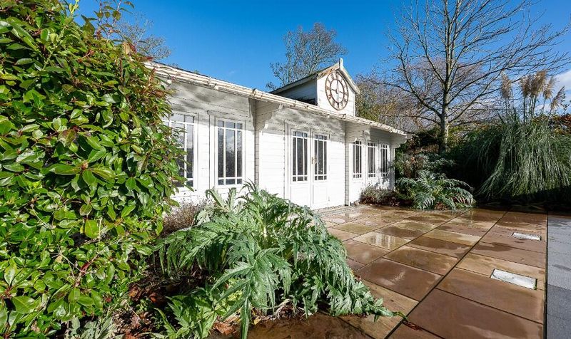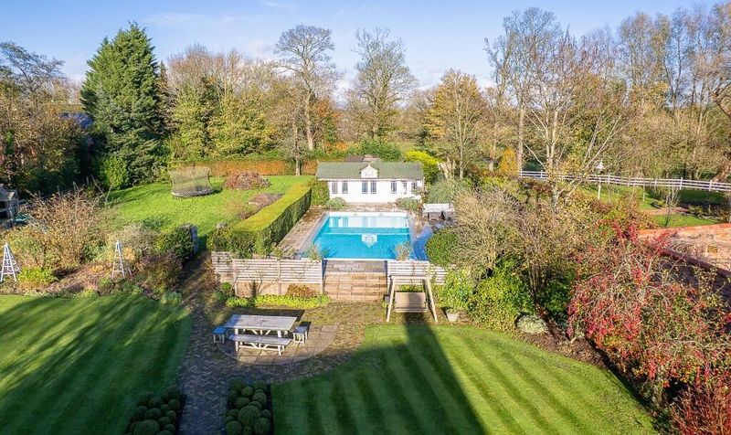 The outdoor space is one of the property’s greatest assets and a rare offering for Open-week accommodation. Beyond the elegant frontage, the grounds open into sweeping lawns, centuries-old trees and meticulously landscaped borders that create a sense of peace and seclusion. Winding pathways lead through beautifully maintained gardens, evoking the atmosphere of a private countryside estate. At the centre lies the spectacular heated outdoor swimming pool, framed by stone terracing, manicured hedging and luxurious loungers. The pool house and surrounding sun terraces deliver a resort-style experience, perfect for quiet recovery, alfresco dining or discreet entertaining in complete privacy. Expansive gated parking and total seclusion make the property exceptionally practical for high-profile guests.