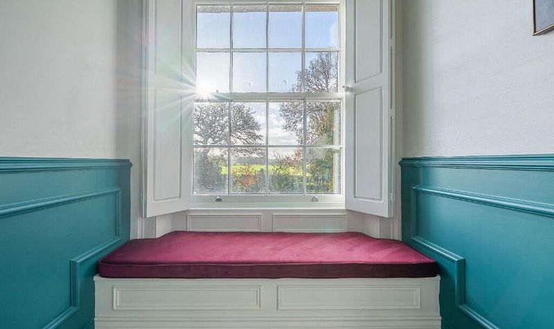 As you step inside, the grand entrance hall immediately sets the tone for the home’s exceptional quality. Intricate teal wall panelling, statement lighting and a striking console create an atmosphere of refined elegance, while sunlight highlights the scale and balance of this impressive space – an inviting welcome for guests arriving during the Championship.