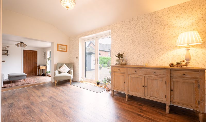 From the very first impression, the property exudes character and quality. The red brick façade, complemented by sleek anthracite windows and an oak-framed entrance porch, sets the tone for the exceptional finish found throughout. Stepping inside, a spacious and inviting entrance hall greets you, dressed in neutral tones and natural wood detailing, providing a perfect introduction to the home’s elegant aesthetic.