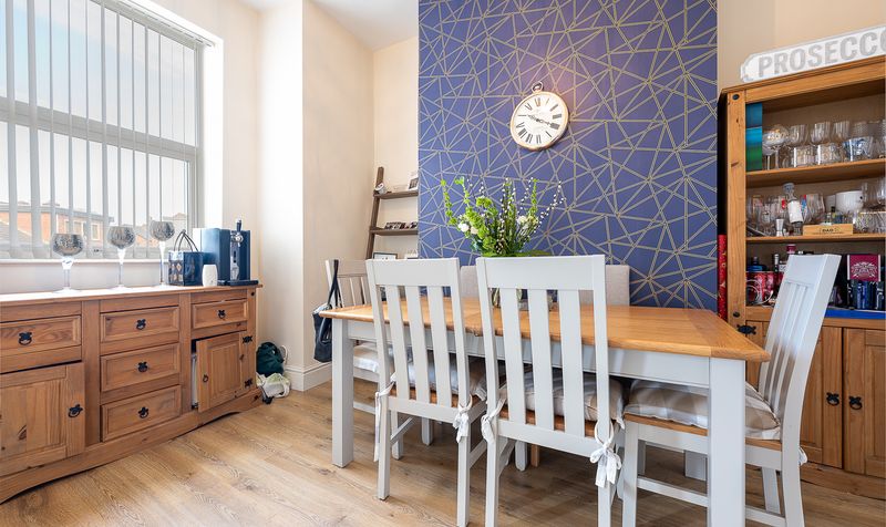 The property is approached via a charming frontage with a low-maintenance garden and pathway leading to the entrance. The home has been enhanced by the addition of new windows, a new front door, and a stylish porch, enhancing both its appearance and energy efficiency. Set behind a characterful bay-fronted façade that immediately sets the tone for what lies within. Stepping inside, you are welcomed by a bright and inviting hallway, finished with warm flooring and tasteful décor, creating a lovely first impression and offering access to the main living spaces.