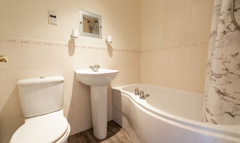 Upstairs, you’ll find two generously sized double bedrooms, both neutrally decorated, and a modern bathroom with a shower over the bath, basin, and toilet.