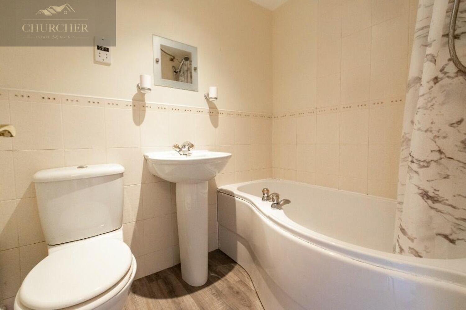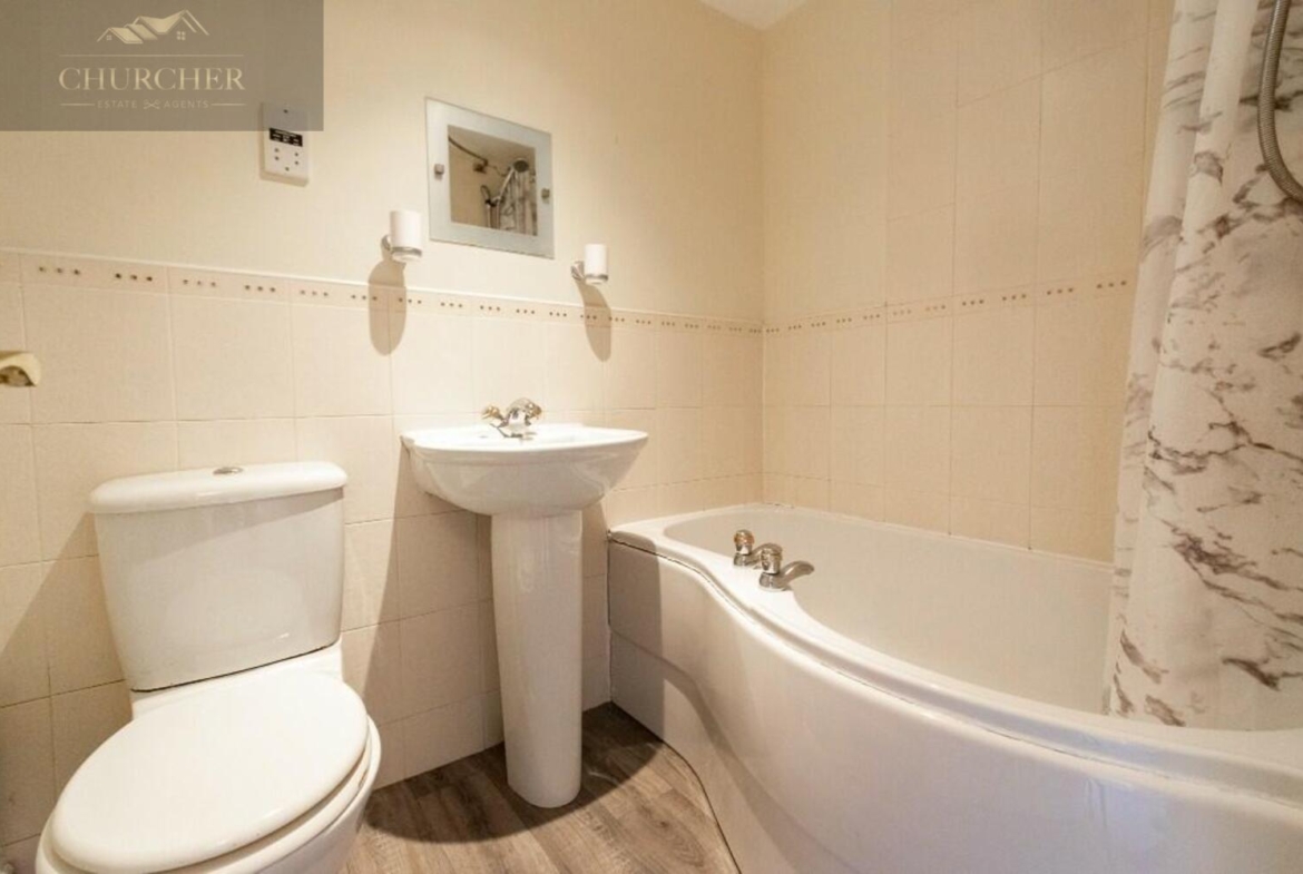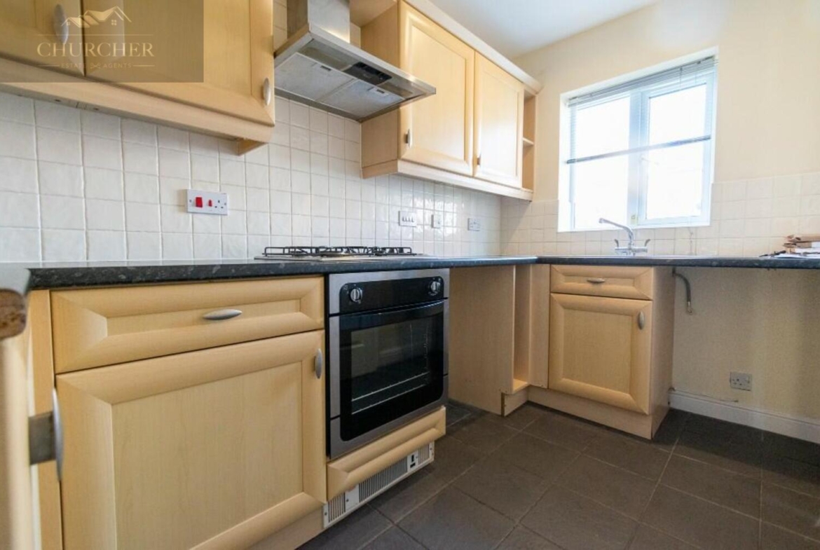 The property briefly comprises of entrance hallway which leads into a modern fitted kitchen with built in appliances and ample storage space provided by the cupboards throughout. To the rear of the property is a spacious living room which could be used as a lounge and dining area combined. Double doors lead out to the garden giving plenty of natural light to the room. Also on the ground floor is a WC. To the first floor are two neutrally decorated double bedrooms, and a modern bathroom with shower over the bath, basin and toilet.
