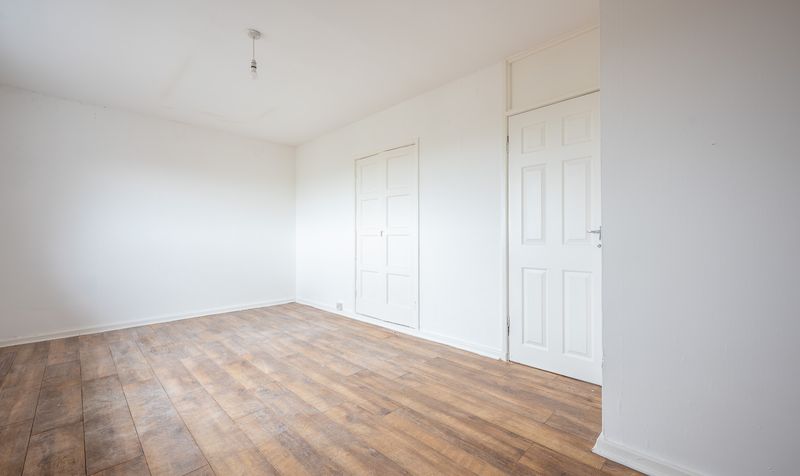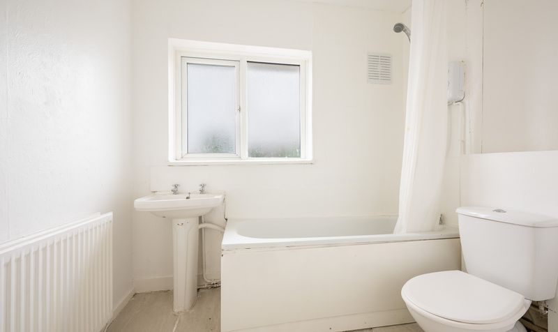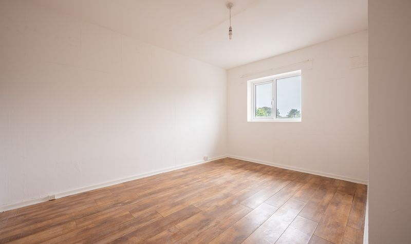 Ascending to the first floor, the apartment offers two particularly well-proportioned bedrooms. The principal bedroom stretches across the width of the property, making it an impressive and versatile room, while the second double bedroom enjoys views to the rear. Completing the accommodation is a family bathroom, fitted with a white three-piece suite comprising a panelled bath with overhead shower, wash basin, and WC.