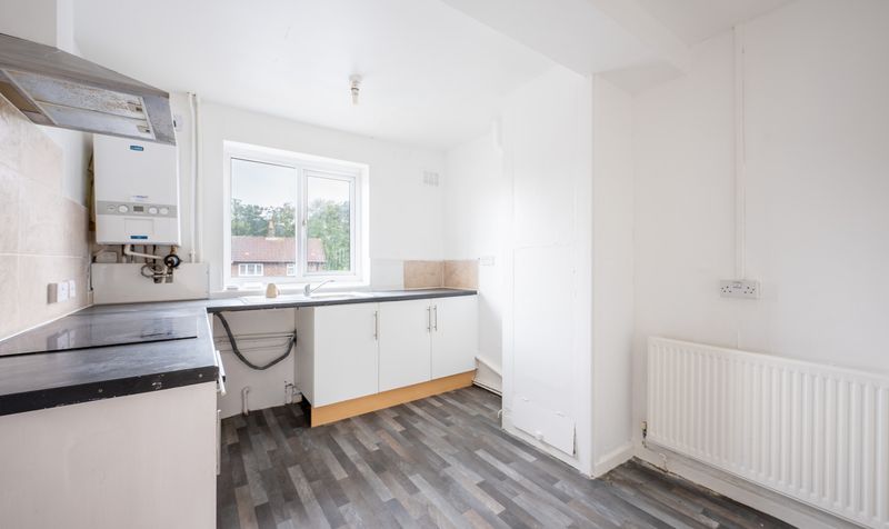 On entering the apartment, you are welcomed into a bright hallway with access to the main reception rooms and stairs rising to the first floor. To the front sits a large lounge, a light-filled space with a feature fireplace and ample room for both living and dining furniture. To the rear, the kitchen provides fitted base and wall units with work surfaces, tiled splashbacks, and space for appliances, complemented by a large window overlooking the surrounding area.