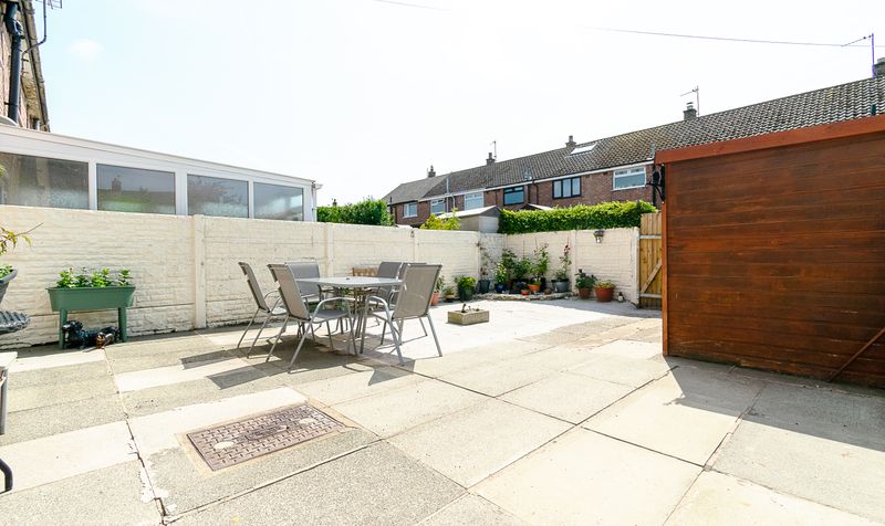 - Low-maintenance rear garden with patio and storage shed