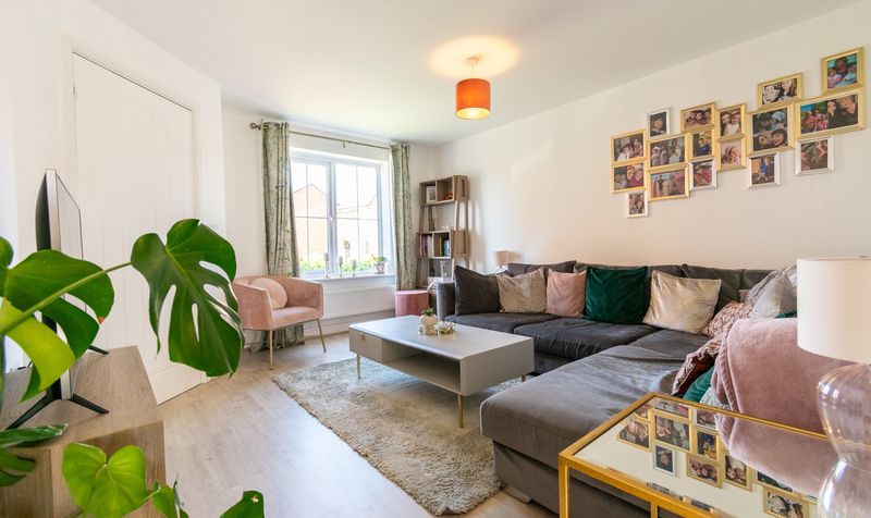 The property briefly comprises of an entrance hallway leading through to a good-sized lounge situated at the front of the property. The lounge is decorated using neutral tones and is a bright and beautifully presented space, filled with natural light from a large front-facing window. The room offers a generous footprint, perfect for both relaxing and entertaining, and is stylishly decorated with neutral tones and quality flooring that enhances the modern, airy feel. A central feature light and tasteful furnishings complete the look, while the layout provides ample room for a large sofa and additional seating.