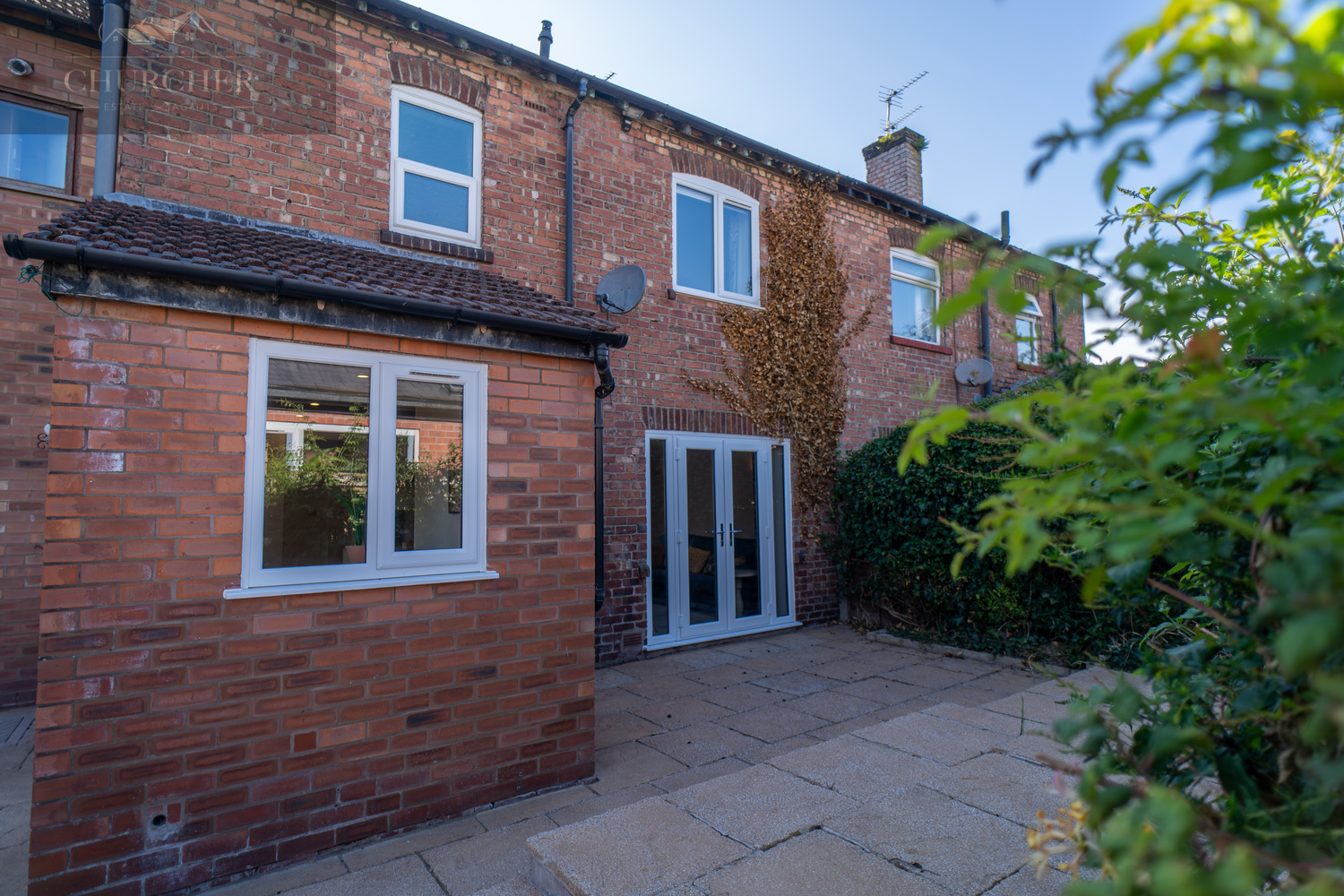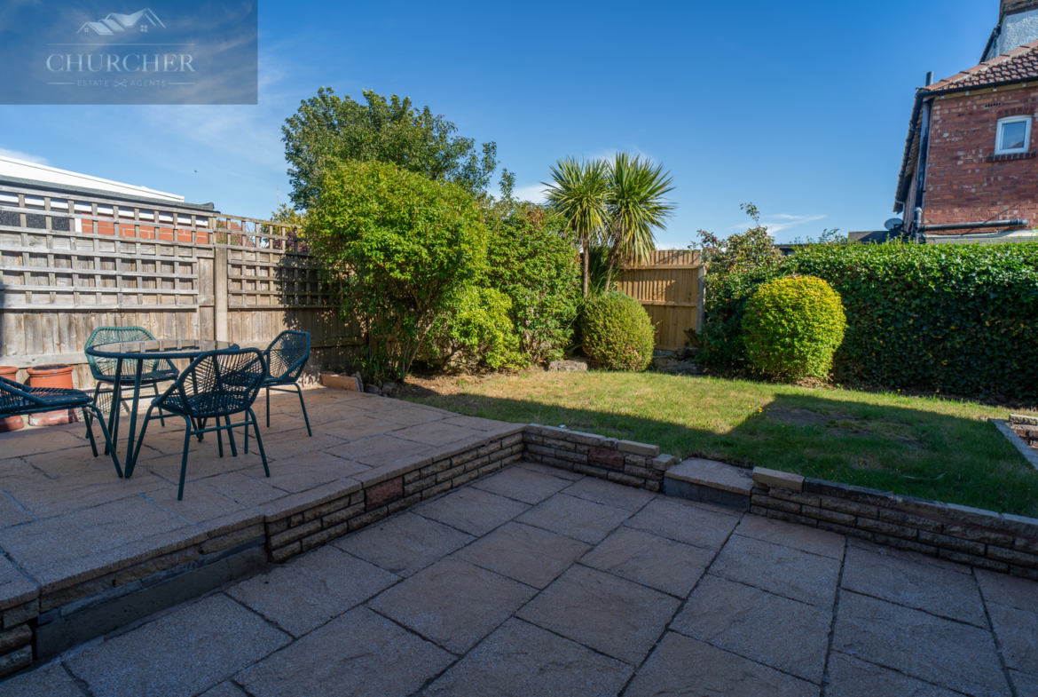 Outside, the rear garden offers a wonderfully private retreat. A raised patio provides an ideal setting for al fresco dining, morning coffee, or evening drinks, while the lawned area and mature planting add colour and calm. It is the perfect environment to relax and recharge.