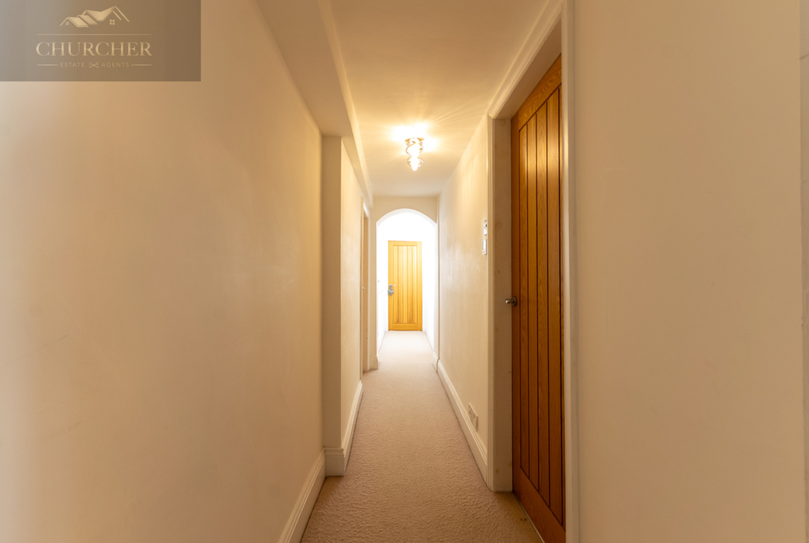Upstairs, the landing stretches through the centre of the home beneath graceful archways, leading to four generously proportioned bedrooms and a beautifully appointed bathroom.
