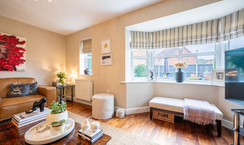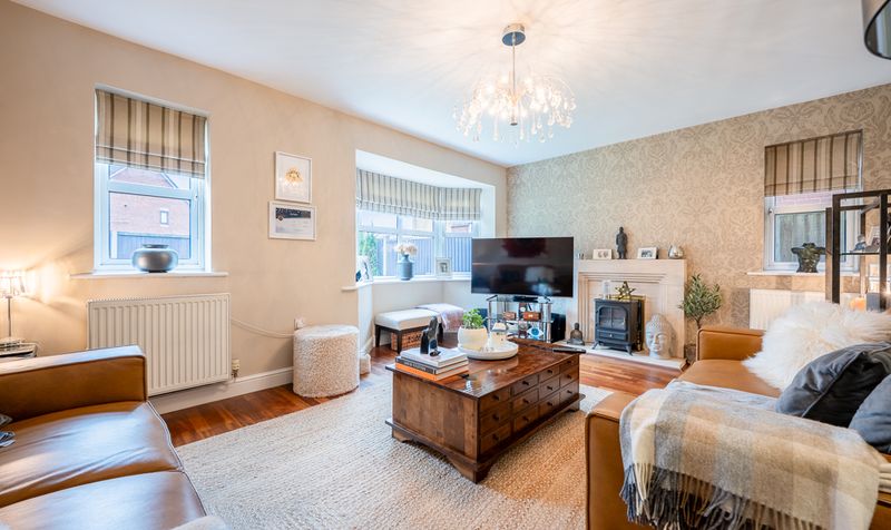 The lounge is a generous and welcoming room, beautifully decorated in soft neutral tones. A feature bay window overlooks the garden while the lovely wooden flooring adds warmth and character. With a central fireplace creating a cosy focal point, this is a perfect space to relax and unwind.