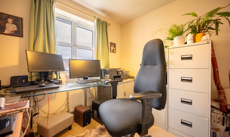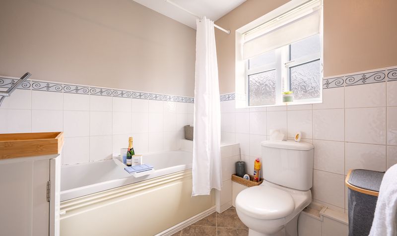 The remaining three bedrooms are all well-proportioned, each offering flexibility for use as children’s bedrooms, guest rooms, or a home office. The family bathroom completes the upper level and is fitted with a contemporary suite including a bath, WC, and wash basin.