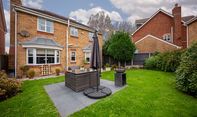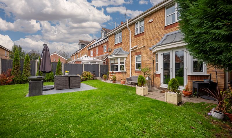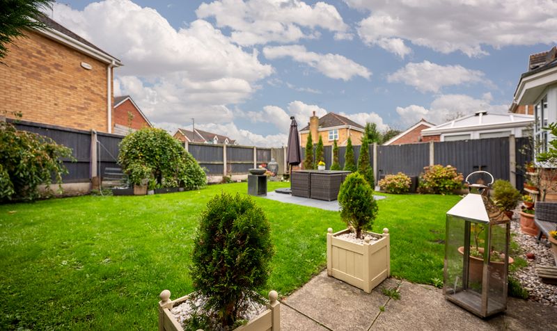 Externally, the property continues to impress. The front provides ample off-road parking and an integral garage, ideal for storage or potential conversion. To the rear, the garden is particularly spacious and beautifully maintained – a wonderful space for families to enjoy. With a large lawn, established planting, and a stylish patio seating area, it offers the perfect setting for summer entertaining, children’s play, or simply relaxing outdoors in the sunshine.
