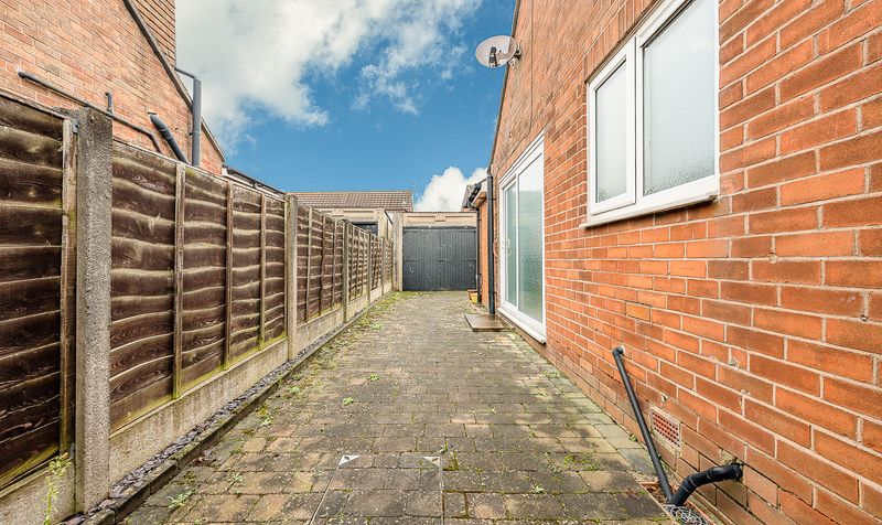 Externally, the property continues to impress. The rear garden is a manageable yet generous outdoor space, mainly laid to lawn with surrounding patio areas – perfect for seating, planting, or creating a peaceful retreat. A paved side pathway provides useful access around the property, leading to additional storage or potential for further landscaping. The garden is enclosed, offering privacy and security, ideal for those with pets or visiting family.
