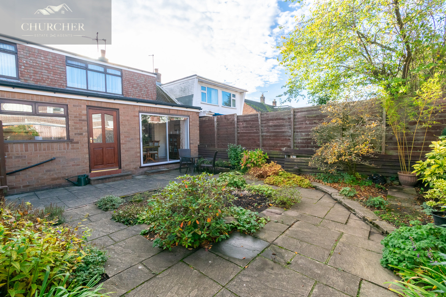 - Attractive, low-maintenance front and rear gardens with patio and mature planting