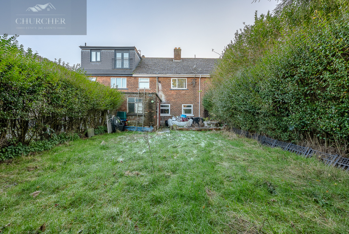 Externally, the rear garden offers a private outdoor space with a mix of paved and lawned areas, bordered by mature hedging and planting. While currently requiring attention, it presents a fantastic opportunity to create an attractive garden retreat.