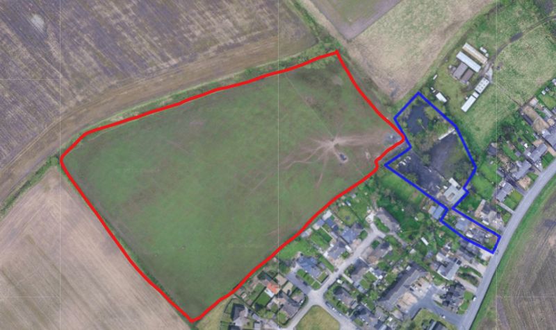 Two aerial views are included in the advert: the blue line marks the property boundary, while the field highlighted in red indicates the additional eight and a half acres available to rent.