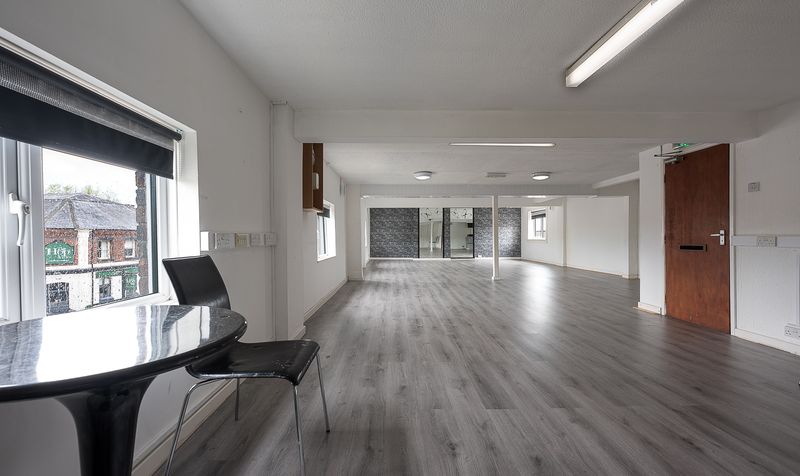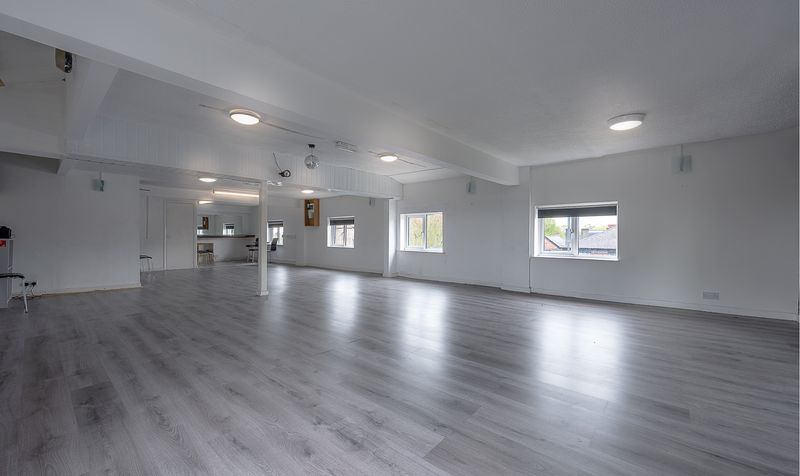 Extending to approximately 1,925 sq ft, the property offers generous and flexible space, currently utilised as a dance studio, but equally well-suited to a wide range of alternative business uses. The layout is centred around a large open-plan studio or office area, creating an excellent environment for collaborative working, client interaction or creative use. A second well-proportioned studio provides additional flexibility, perfectly suited to private workspace, treatment rooms or meeting areas.