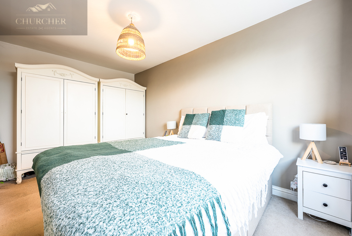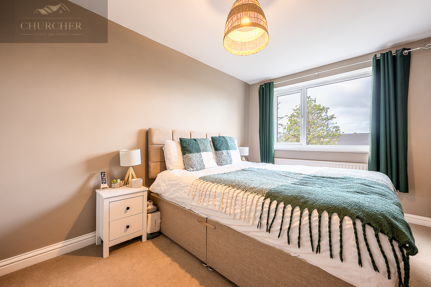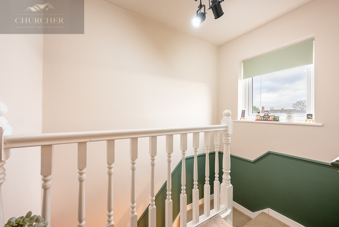 Upstairs, the landing is bright and airy with a feature half-wall panel detail and a window overlooking the front, enhancing the sense of space. From here, the three bedrooms unfold. The principal bedroom offers excellent proportions, a calming colour palette, and pleasant open views across the rear garden. The second bedroom is another spacious double, beautifully presented with plenty of room for wardrobes and additional furniture. The third bedroom is also a double, making this home exceptionally versatile for families, guests, or those needing a generous home office.