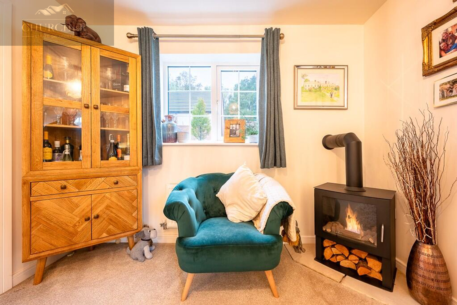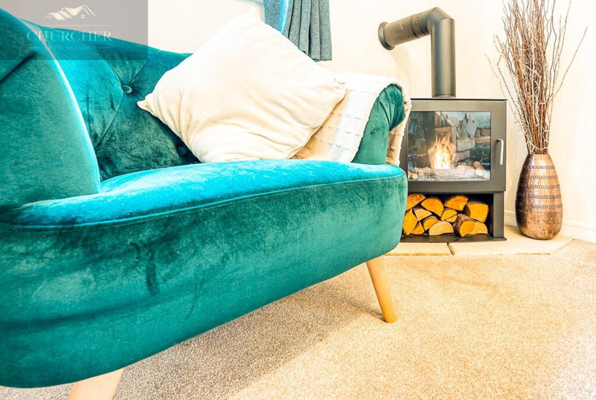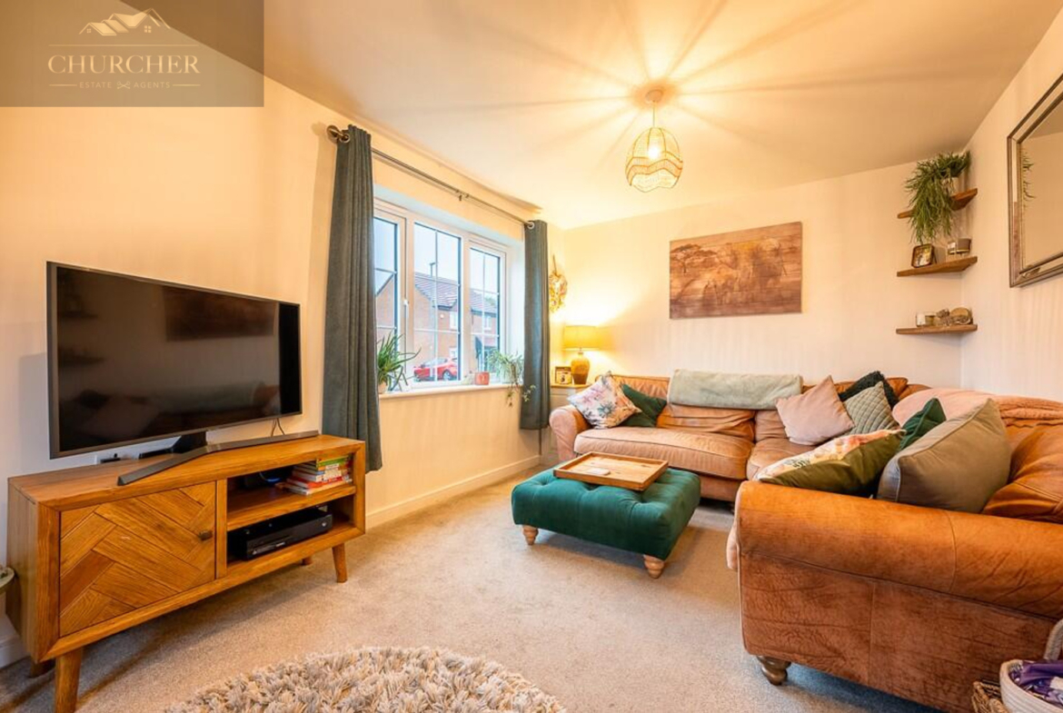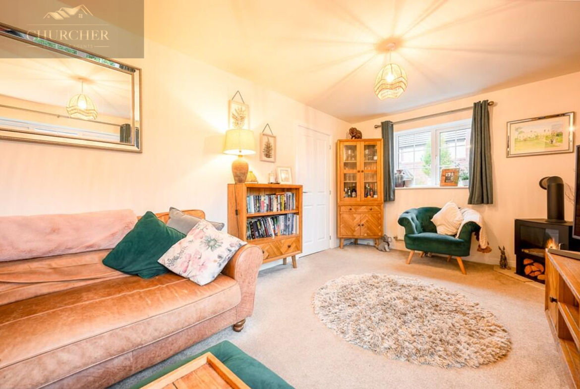 The living room sits to the front of the property and offers a comfortable and relaxing space, tastefully decorated and filled with light from a large window overlooking the front elevation. A feature fire adds warmth and charm, creating a cosy focal point for the room-perfect for quiet evenings or family gatherings. The room is finished with soft carpeting and a soothing colour palette that enhances its inviting atmosphere.