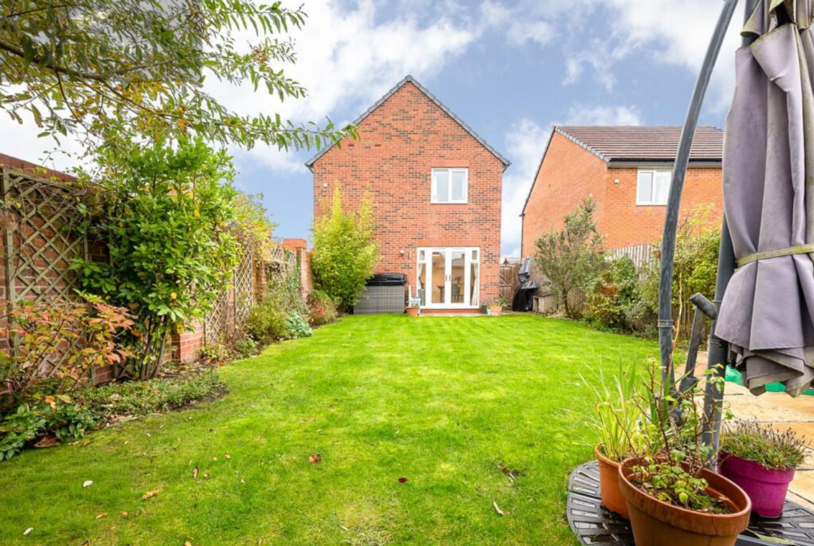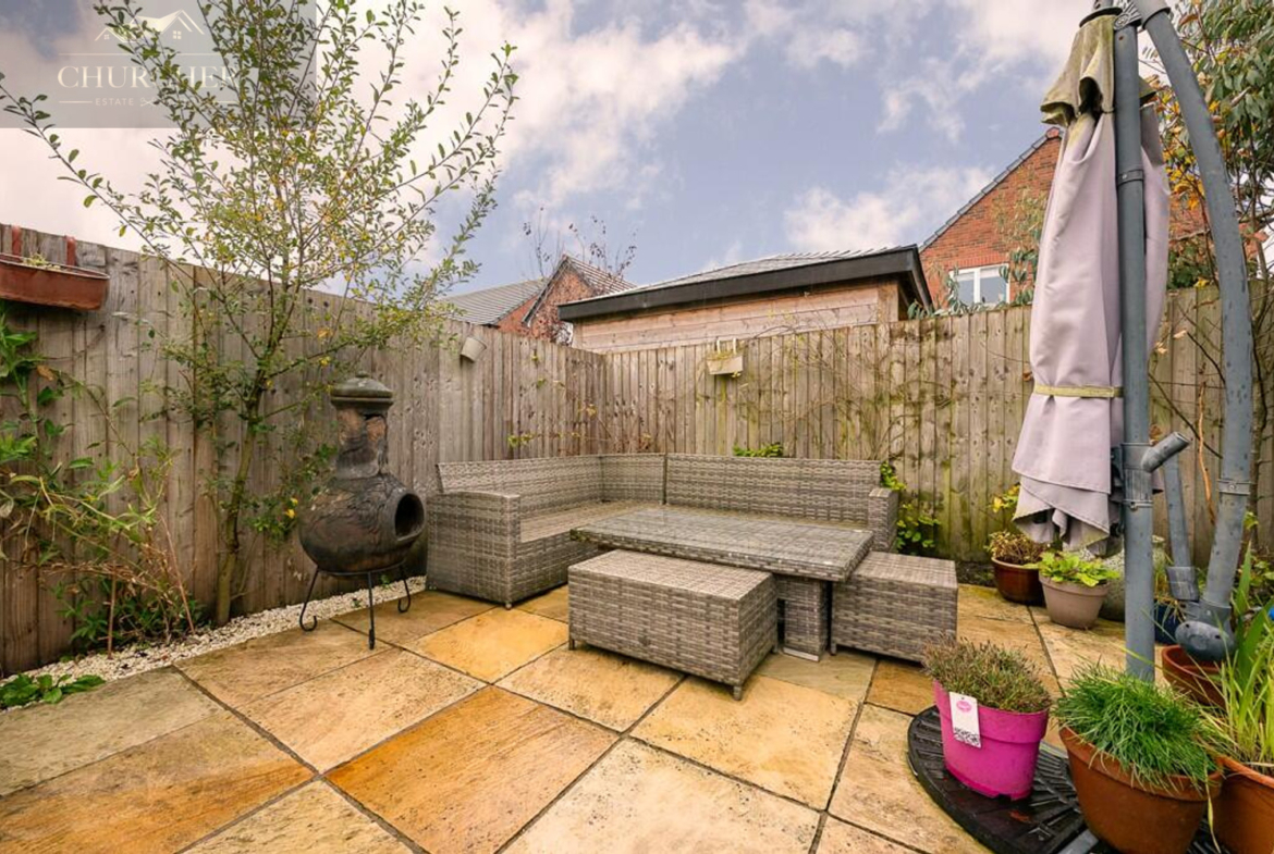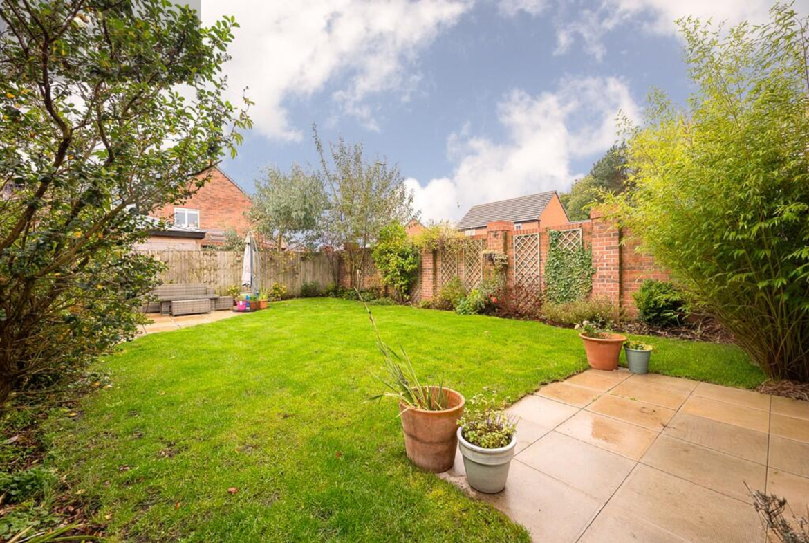Externally, the property has attractive curb appeal, with its classic red-brick façade, a covered entrance, and a neatly maintained lawned frontage. To the rear, the private enclosed garden offers a peaceful retreat, with a patio area ideal for outdoor dining, a well-kept lawn, and established planting to the borders. It’s the perfect space for family life, entertaining, or simply enjoying a quiet moment outdoors. The property also benefits from off-road parking.