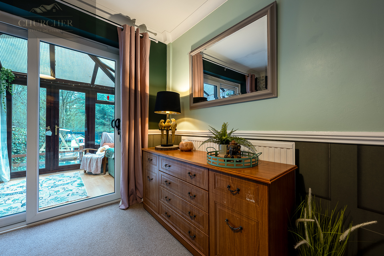 The dining room enjoys views over the rear garden and benefits from sliding patio doors leading directly into the conservatory. This additional reception space is flooded with light thanks to its wraparound glazing and pitched roof, providing the perfect spot to relax with a book, enjoy morning coffee or create a play space overlooking the garden.